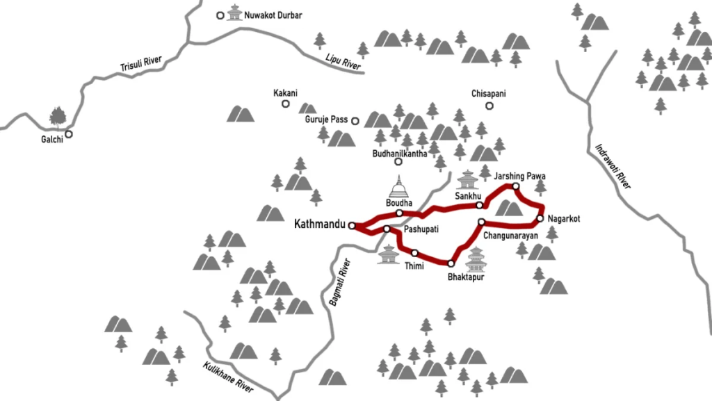 This ride out starts in Kathmandu where we visit Boudhanath, the largest Tibetan stupa outside of Tibet. We ride by rice paddies to reach the ancient town of Sankhu. We take local jeep tracks to reach Nagarkot, a famous hillside resort with panoramic views of the Himalayas. Then we again ride on jeep tracks to Changunarayan. This Hindu temple dedicated to Lord Vishnu is home to the oldest stone inscription in Nepal, dating back to 464 AD. We enter the old Kingdom of Bhaktapur and through Thimi, home to some of the greatest architecture in Nepal. We finish our ride by visiting Pashupatinath, the largest temple complex in Nepal. This day ride will be an exciting and immersive way of touring the city’s most famous temples and giving you a chance to get out of the city to the hilltop village of Nagarkot.