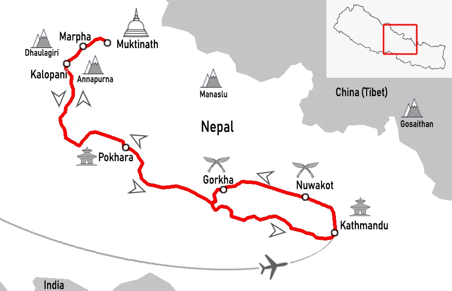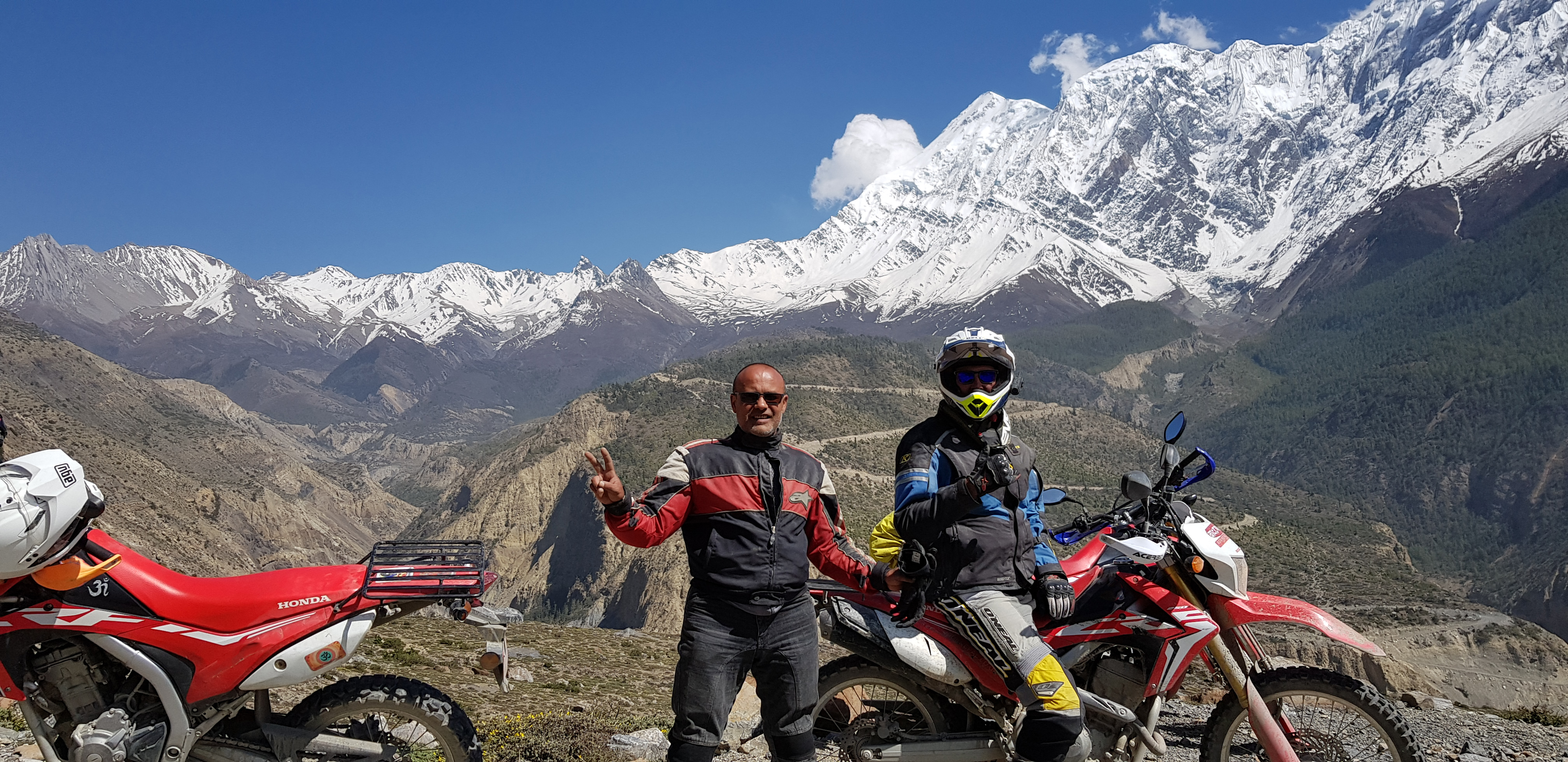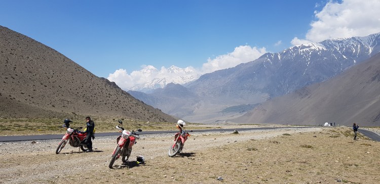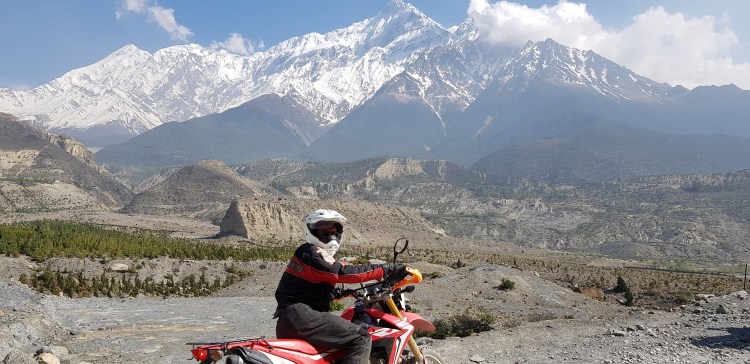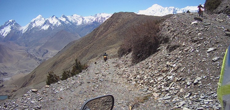 On this tour we visit the highest temple in the world, Muktinath and view 3 of the 8000m+ peaks; Mt. Dhaulagiri, Mt. Annapurna and Mt. Manaslu. About half of this tour is highway riding and half is on local jeep tracks. Truly mind-blowing scenery with sometimes challenging terrain.