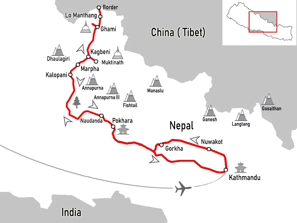 Tibet sits just a few miles from here. Highlights include visiting Muktinath temple, sat at 3840m, riding to the Chinese border and numerous remote mountain villages with links to Tibet.